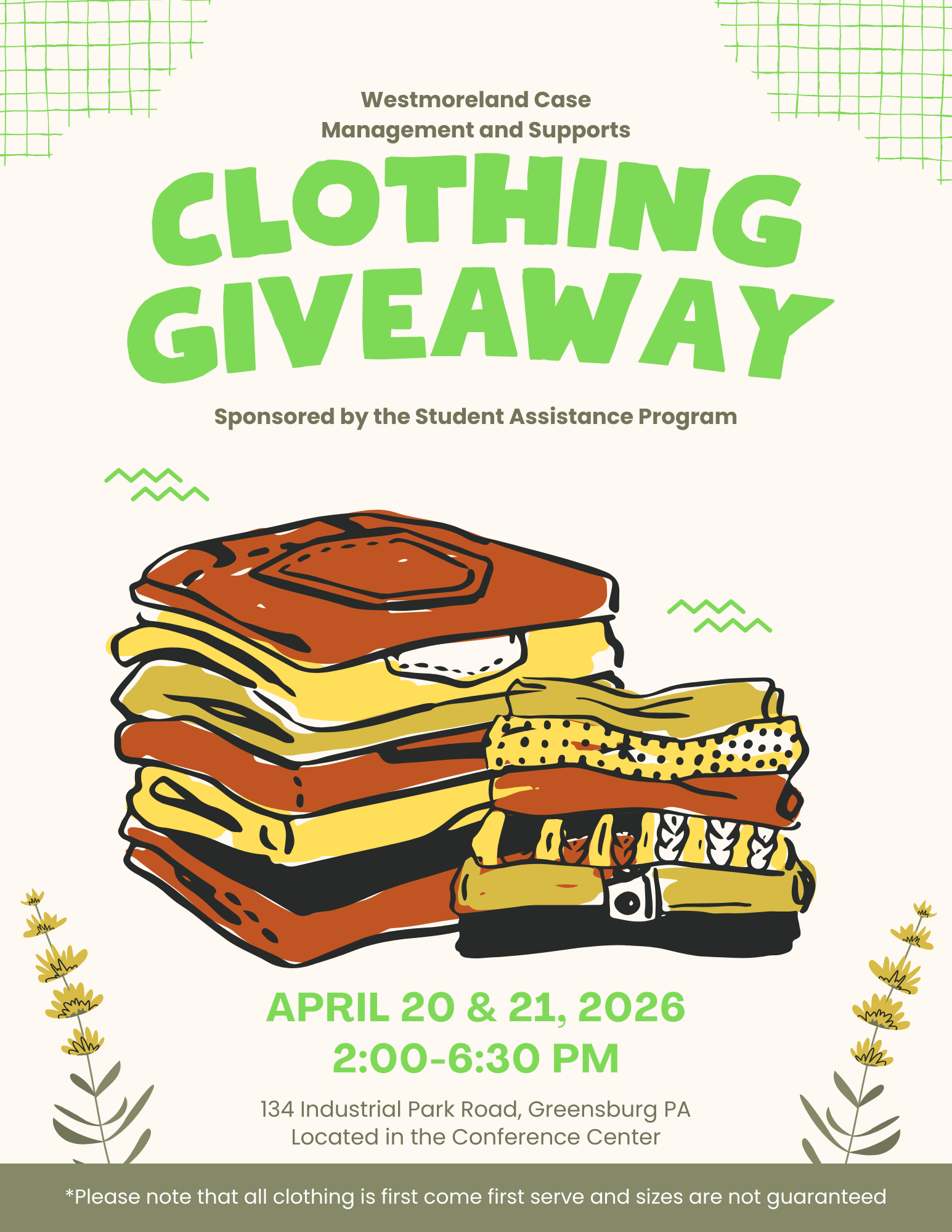 Westmoreland Case Management Clothing Giveaway April 20 & 21, 2026 2:00-6:30 (Click on Link for more information)